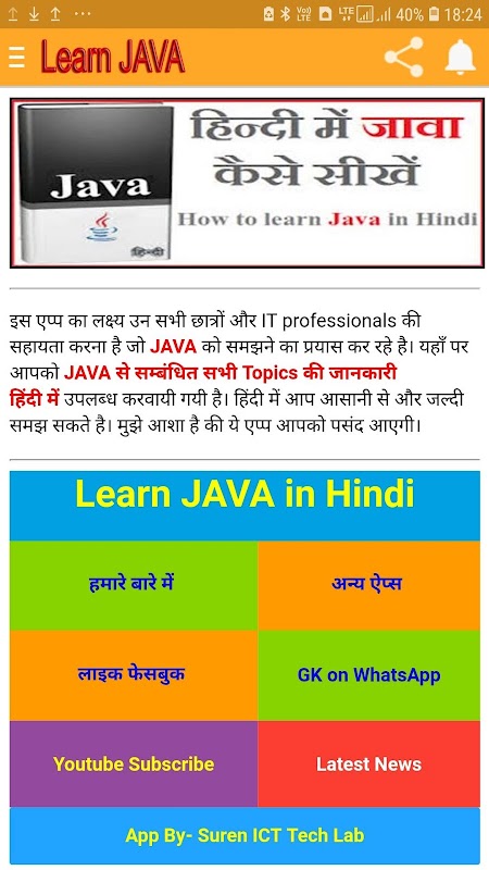 تعلم JAVA باللغة الهندية ، هذا التطبيق مفيد جدا لجميع محترفي تكنولوجيا المعلومات