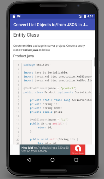 كائنات 17. قائمة تحويل إلى / من JSON في GSON والسبات