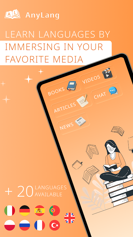 اقرأ الكتب والمقالات وشاهد مقاطع الفيديو بأكثر من 10 لغات على AnyLang.