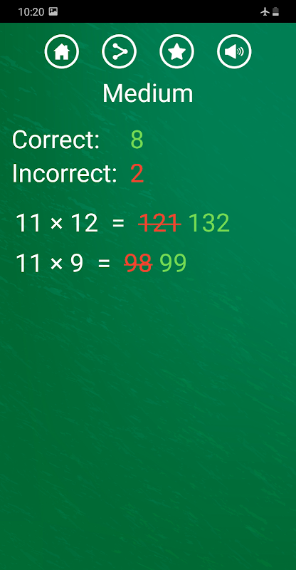 ✔ اضغط على زر "الصفحة الرئيسية" لبدء اختبار الرياضيات مرة أخرى أو اختر فئة أخرى من لعبة الرياضيات ؛