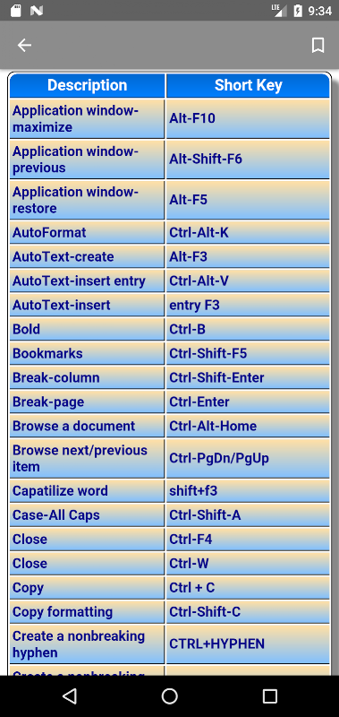 يحتوي التطبيق أيضًا على جميع المفاتيح القصيرة لـ MS word.