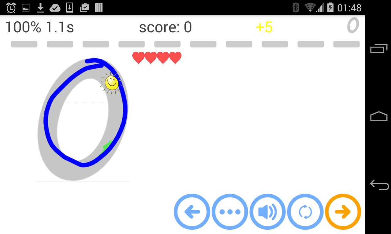 Digits and numbers tracing game that keeps children engaged and practicing through gamification of this boring task. The game includes 15 levels, each emphasizing various aspects of writing: accuracy, smoothness, speed of writing. Each digit comes with dynamic instructions. The writing accuracy, smoothness and speed are evaluated and children receive feedback.