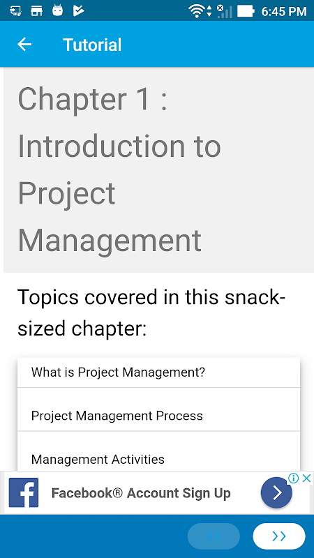 يوفر هذا التطبيق ملخص سريع للمفاهيم الأساسية في إدارة المشاريع من خلال اتباع وجبة خفيفة الحجم فصول: