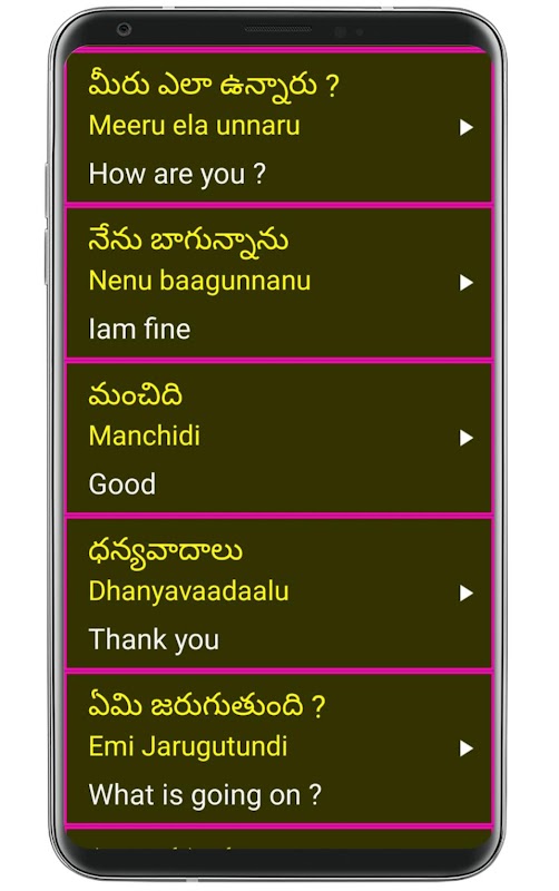 3. يتم توفير جميع الكلمات والجمل التيلجو مع المعاني الإنجليزية.