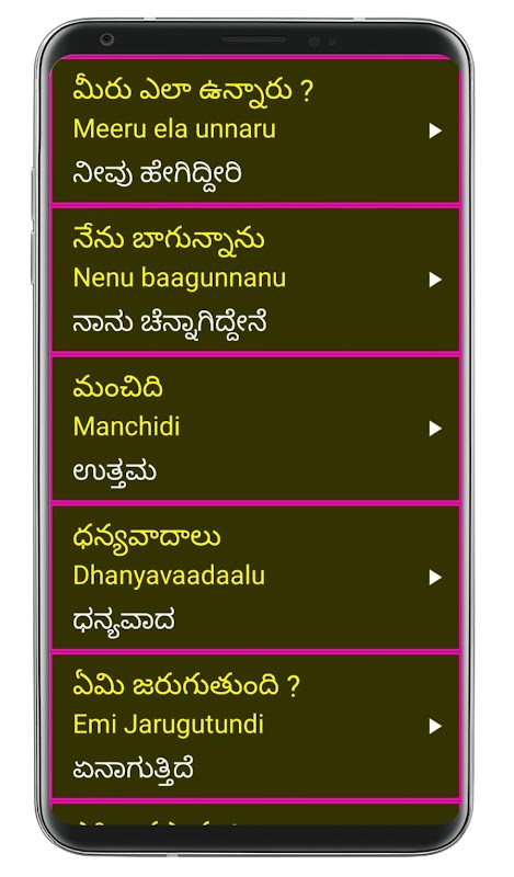 3. جميع الكلمات والجمل التيلجو مزودة بمعاني الكانادا.
