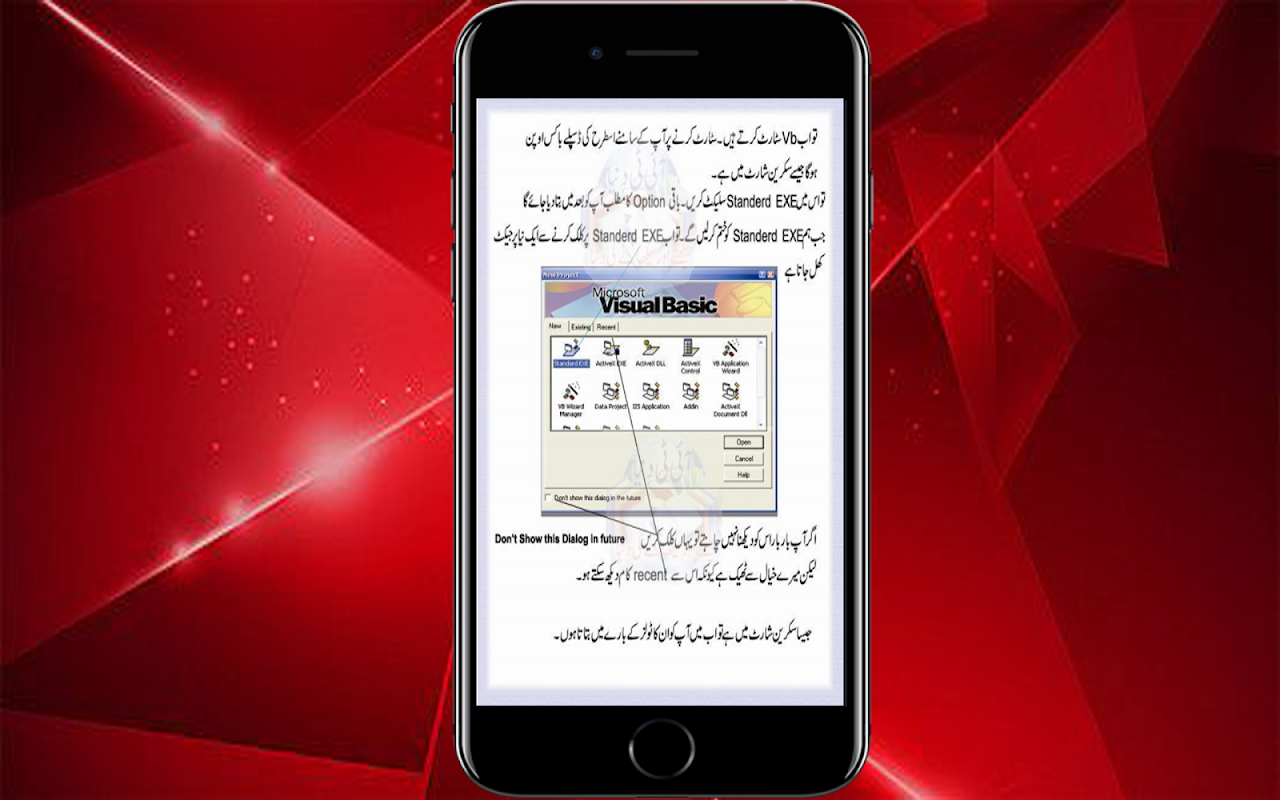 read guide teaching and training course in basic line easy Visual Studio 6 in Urdu. Contact in this book is training classes, how to start, the introduction of program development, which is, Active X, model, professional learning and basic Edition.Visual company, Microsoft Office, toolbar, toolbox , project list, list of objects, form designer class, learning about the tools menu design, the shape of the RGB colors in this software, classes coding, component selection, command buttons, context box MSG Adding support for applications Visual Studio, MSDN, toolbox, instruction Enter and title.