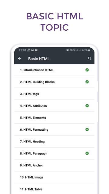 يعد تطوير الويب (HTML، CSS) تطبيقًا مفيدًا للغاية لجميع الطلاب لمسح كل مفاهيم HTML و CSS الأساسية والمتقدمة.