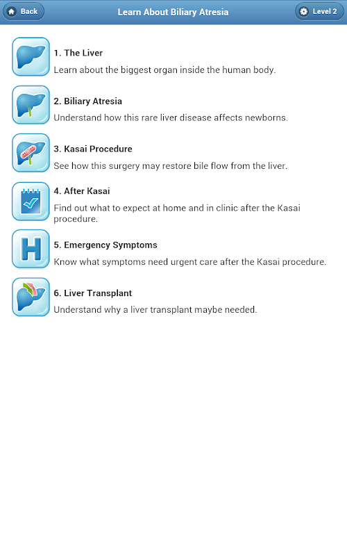 Biliary atresia (BA) is a chronic liver disease affecting children. LearnAboutBA is a useful learning and teaching app for parents, patients and health-care providers. Featuring two levels of information, users can learn at their own pace. This app helps users understand all aspects of biliary atresia from anatomy to treatment using beautiful illustrations and animations.