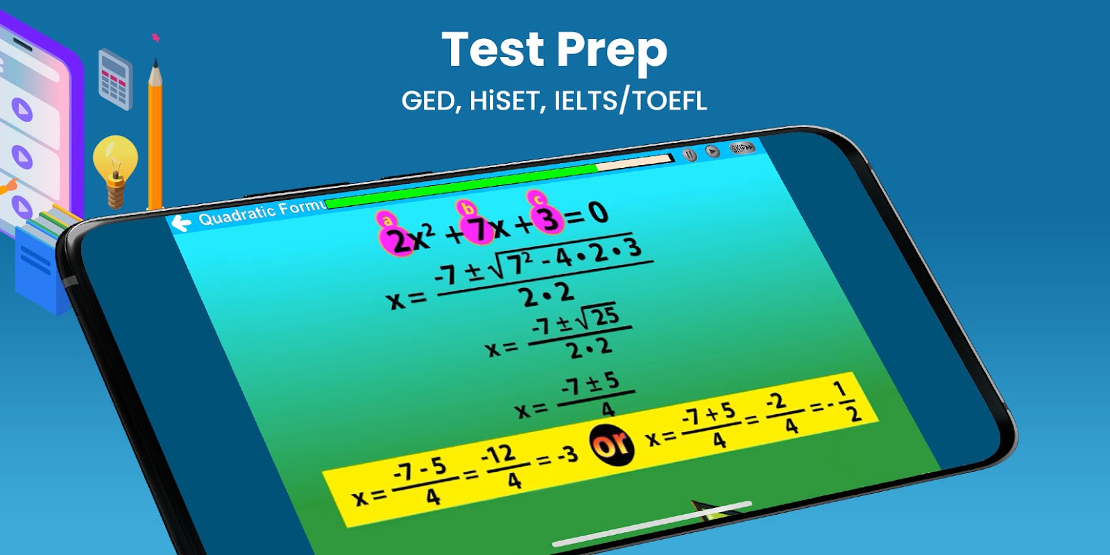 هل تحاول تعلم اللغة الإنجليزية أو التغلب على صعوبة التعلم؟ هل تحتاج إلى إجراء اختبار مثل TOEFL أو IELTS أو GED؟ هل تحتاج إلى اجتياز اختبار للحصول على وظيفة أو دخول الكلية؟ يمكنك الاستعداد للنجاح من خلال العمل في المنزل على هاتفك ، في أي وقت وفي أي مكان!