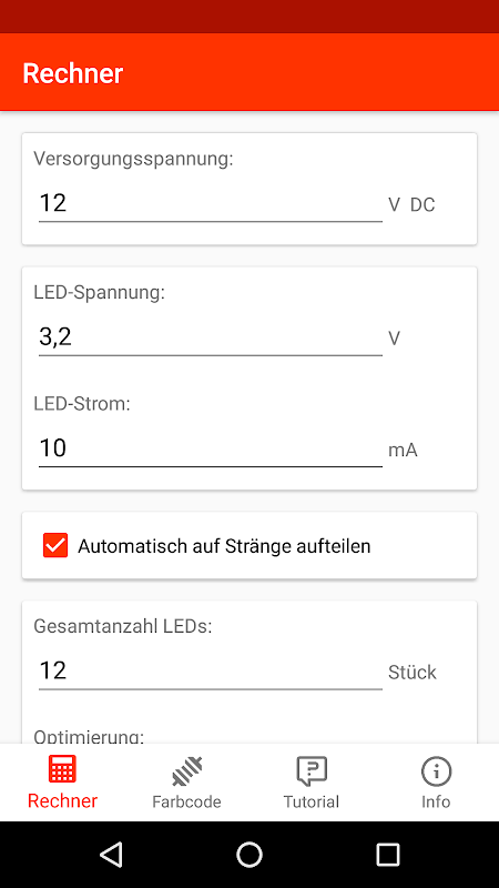 معلومات LED-Helper Vorwiderstandsrechner APK