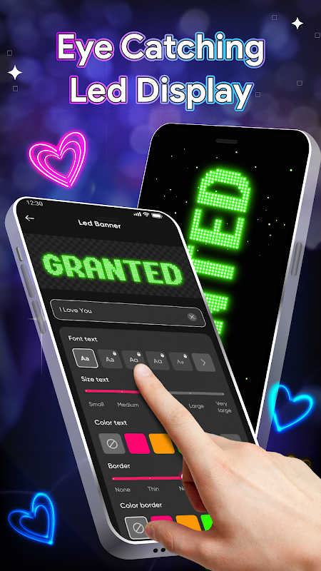 اكتب رسالتك وحرّرها بسهولة مع تحكم كامل في الخط والحجم واللون والنمط. نص LED الخاص بك لن يُغفل أبدًا!