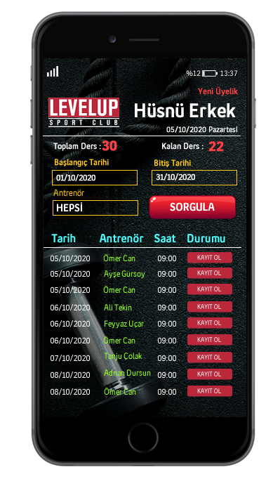 LevelUp Sport Club uygulamamızın amacı Spor Salonumuza üyelik oluşturmak ve bu üyelik ile gün içi antremanlara rezervasyon yaparak katılmak.