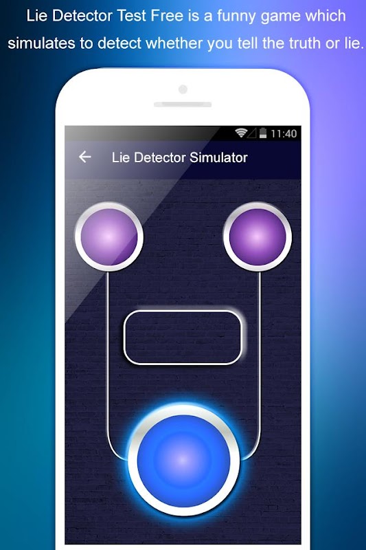 Lie Detector Test Free is a funny game which simulates to detect whether you tell the truth or lie. You just need to press your finger on the fingerprint scanner and then the Lie detector app will scan your finger and calculates the result, true or false.