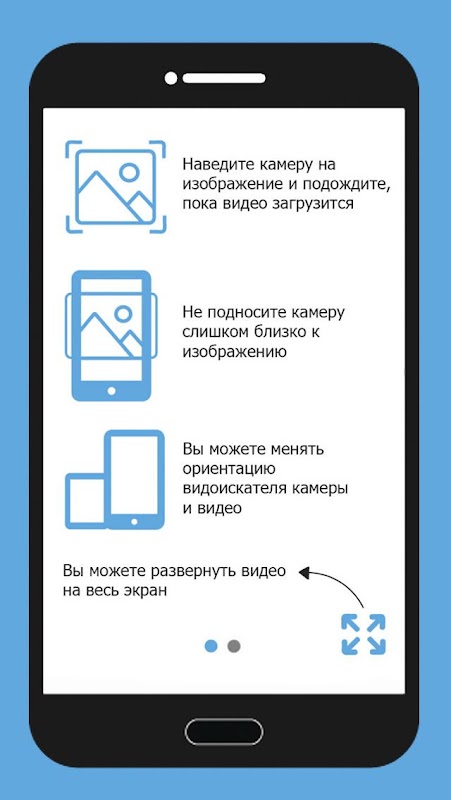 Сканирование изображений-маркеров и воспроизведение мультимедийных материалов в режиме реального времени.