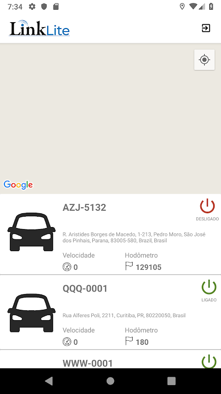 Nesta função você poderá ver a localização exata do seu veículo no Google Maps, bem como o hodômetro e status de ignição.