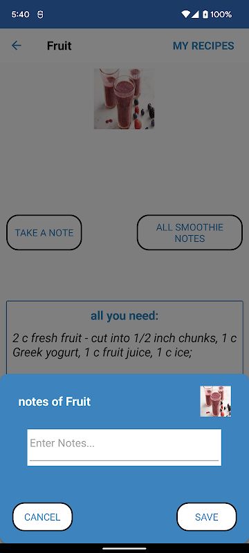 Add, store your very own recipes with My Recipes feature - with name, ingredients, directions;