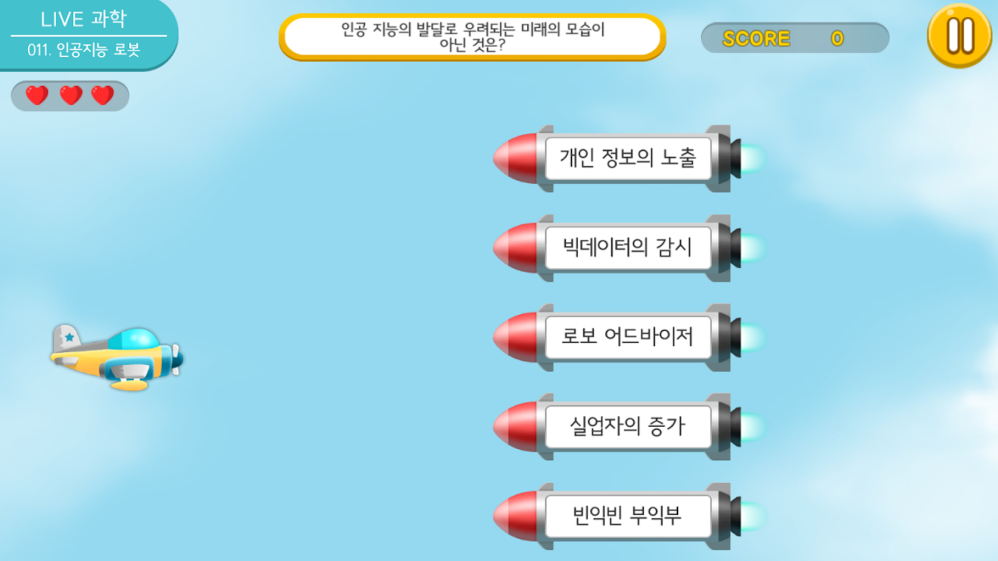 ■ 날아오는 미사일의 보기를 보고 정답을 맞혀 보세요.