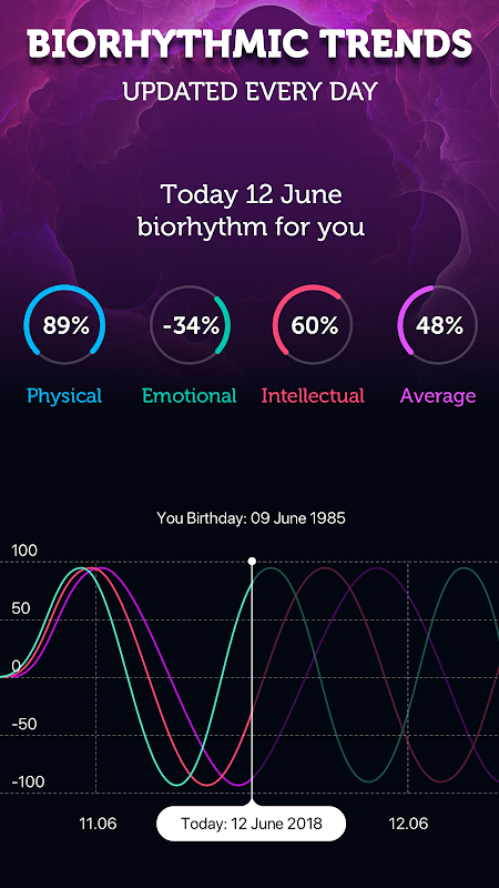 - الأنظمة الحيوية. القيمة الجسدية والعاطفية والفكرية والمتوسط. تحقق من اتجاهات الإيقاع الحيوي الخاصة بك!