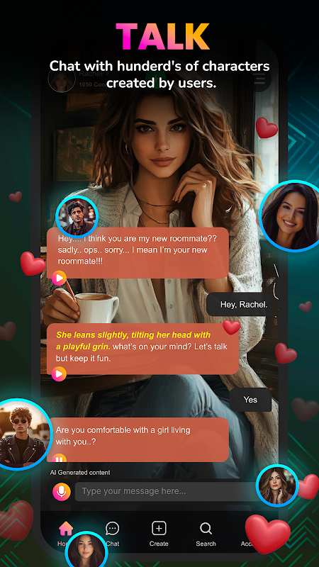 - تفاعل مع شخصيات فريدة من نوعها: قم بالدردشة مع مجموعة متنوعة من الشخصيات الافتراضية، كل منها يقدم شخصية مميزة وأسلوب محادثة.