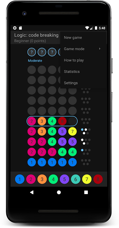 يمكنك الحصول على تلميحات عندما تشعر أن اللعبة صعبة للغاية، ومع ذلك ستتمكن من حل الشيفرة قبل نفاد تخميناتك.