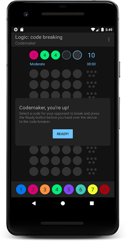 يمكنك تحدي صديق أو فرد من عائلتك في أحد أوضاع اللعب الجماعي في Logic: Code Breaking، إما باللعب على الجهاز نفسه أو اللعب عن بُعد عبر البريد.