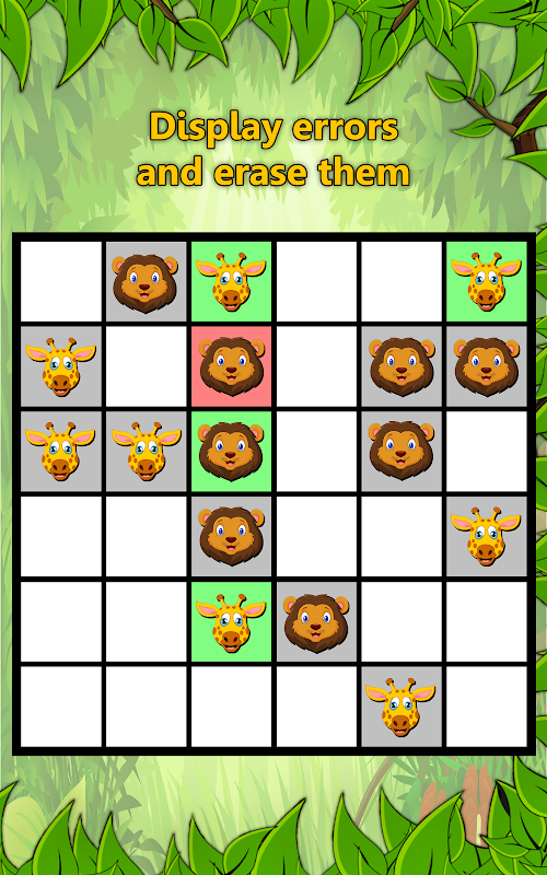 يحتوي كل صف وكل عمود على نفس عدد الحيوانات. إذا تم الوصول إلى الحد الأقصى لعدد حيوان واحد في صف أو عمود، يمكن ملؤه بالحيوان الآخر في الخلايا الأخرى، والعكس صحيح.