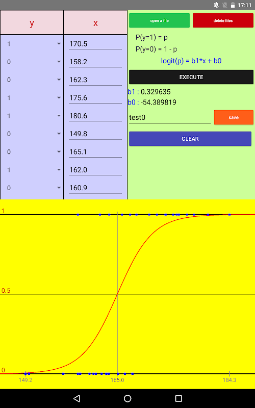 افترض (logit (p) =) log (p / (1-p)) = b1 * x + b0 وقم بتقييم b1، b0 باستخدام أقصى طريقة احتمالية.