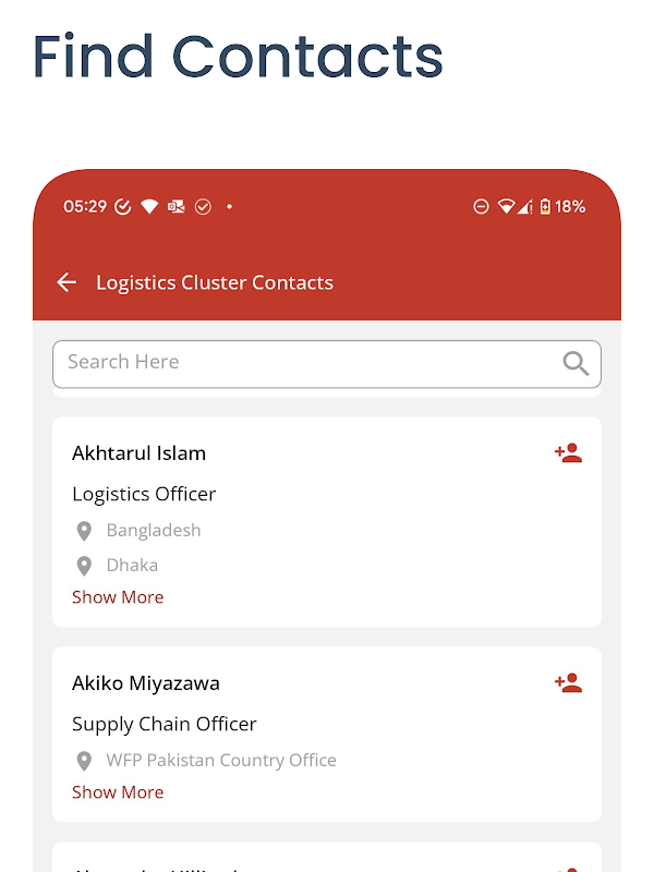 • البقاء على اطلاع بأحدث جهات الاتصال الخاصة بزملاء مجموعة الخدمات اللوجستية، وحفظها بسهولة في قائمة جهات الاتصال الخاصة بك.
