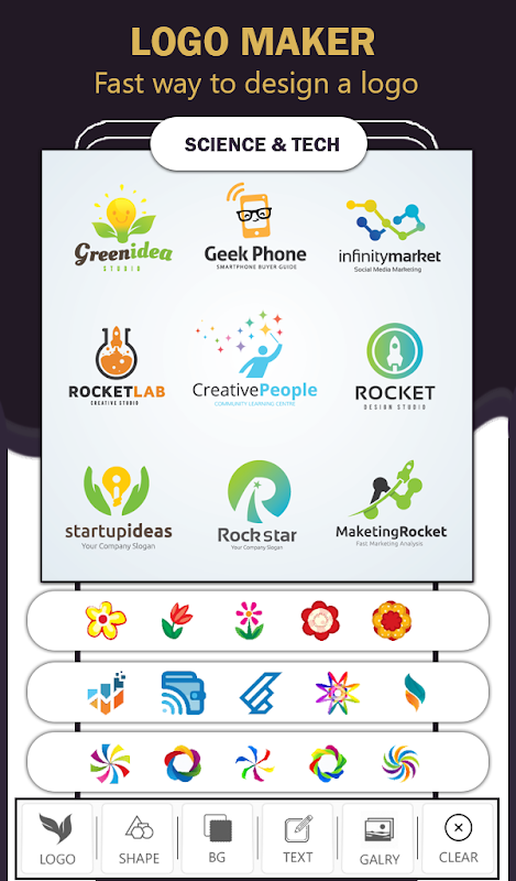 Logo Maker is a fully loaded Logo Designer App to create Professional, Unique and Impressive logos on your phone.