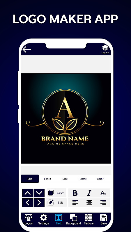 "صانع الشعارات" تطبيق سريع وسهل الاستخدام، مع العديد من الفنون، والقوام، والخلفيات، والألوان. يأتي تطبيق "مصمم الشعارات" مزودًا بجميع أدوات تحرير الصور الاحترافية لإنشاء شعار احترافي. كل ما تحتاجه هو فكرة لتصميم شعارك الخاص.