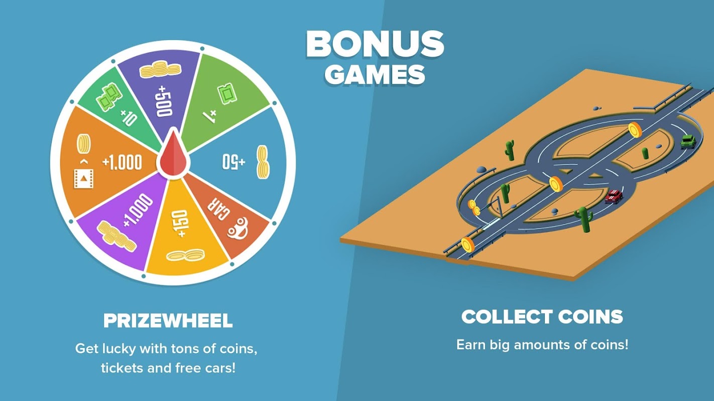 اكسب المزيد من النقود المعدنية مع كل لفة، اجمع السيارات، قم بتوسيع مجموعتك واعرف ما يناسبك.