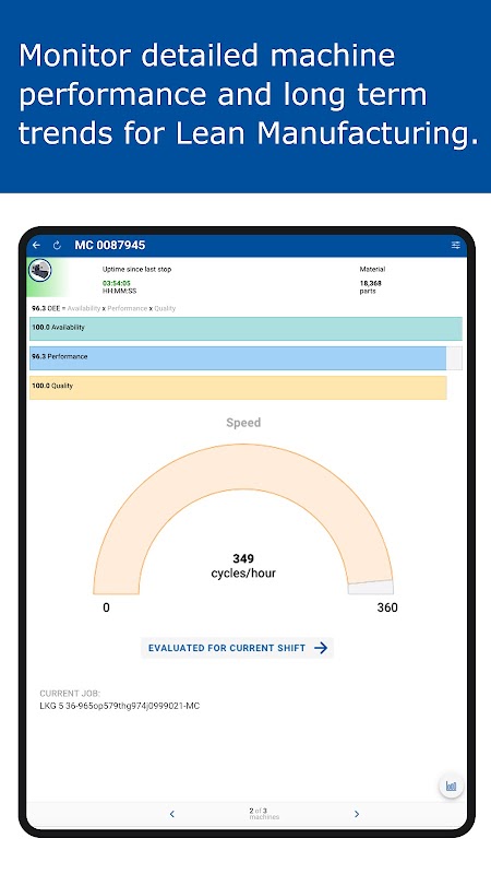 Shibaura Machine owners can remotely monitor the productivity of their machines using this app. Key performance indicators supporting best practices in lean manufacturing such as Operational Equipment Effectiveness, OEE, are incorporated in visual status displays and trends.