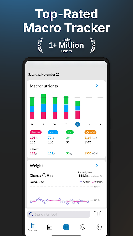 يعد MacrosFirst أقوى متتبع كلي مزود بمتتبع تغذية الوجبات المدمج وماسح الطعام وعداد السعرات الحرارية ومتتبع النظام الغذائي لمساعدتك على تحقيق أهداف نظامك الغذائي وفقدان الوزن والقوة.