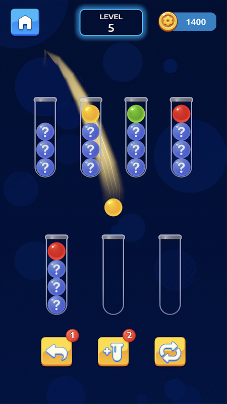 مهمتك بسيطة: رتّب جميع الكرات الملونة المبعثرة في الأنابيب بحيث يحتوي كل أنبوب على كرات بلون واحد فقط. قد يبدو الأمر بسيطًا، لكنه يتطلب منطقًا دقيقًا وتخطيطًا ذكيًا!