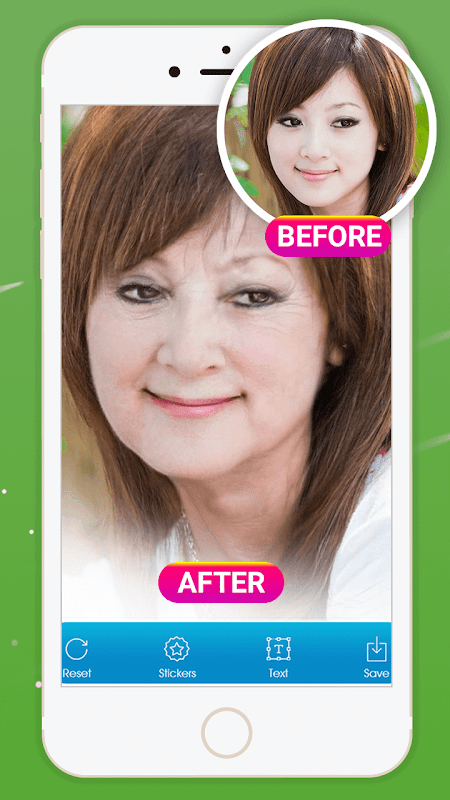 ماسح ضوئي بسيط للوجه وتطبيق متقدم لشيخوخة الوجه يمكن أن يغير وجهك ويرى وجهك المستقبلي في ثوانٍ. إذا كنت مهتمًا بما ستبدو عليه أسرتك أو أصدقاؤك أو مشاهيرك في سن الشيخوخة ، فيمكنك أيضًا مسح صورهم ضوئيًا لمشاهدة وجههم المتقدم في السن ومشاركة النتائج معهم أو عبر وسائل التواصل الاجتماعي.