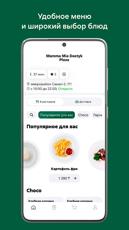 • الدفع السريع: ادفع فاتورة مطعمك أو طلب التوصيل عبر الإنترنت باستخدام Kaspi وأي بطاقة مصرفية.