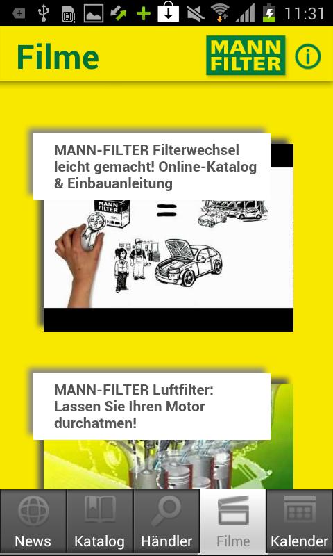 No matter where, when or what - with the MANN-FILTER App you won’t miss a thing! The MANN-FILTER App is your product finder, your GPS, your organizer, your news feed and your video platform. All in one app - all for free.