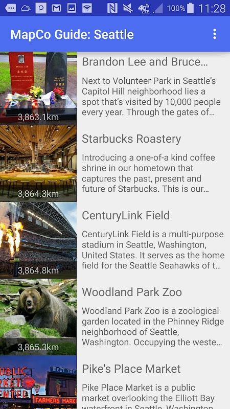 It can be used as a tour guide, and a travel planner - but you will find it most useful when you get there. It is a relative location based guide that shows the user where they are relative to the sites in Seattle. The app shows you, from closest to furthest, where you are in relation to things.