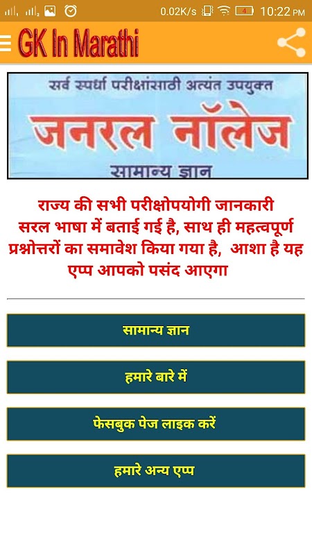 المهاراتية GK marathisamanyajnana لديه مجموعة من حارس مرمى لمختلف الامتحانات باللغة الماراثية