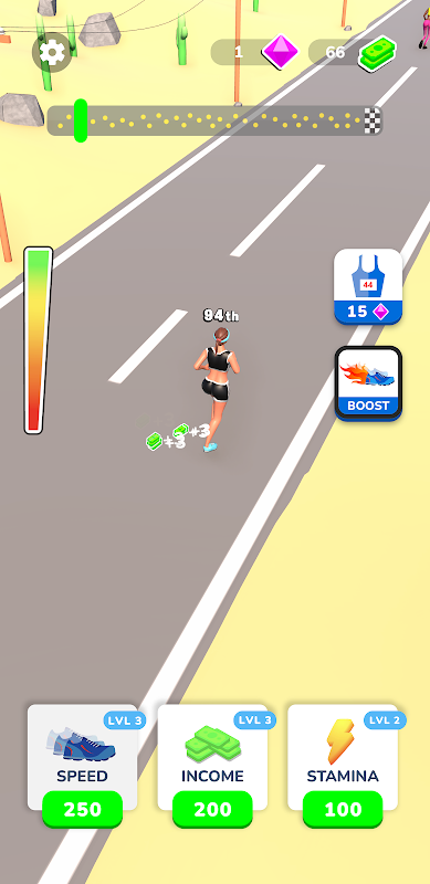 اربح المال من كل خطوة ، أثناء تشغيل ترقية السرعة والقدرة على التحمل والدخل الذي تتلقاه ، كل هذا أثناء الجري. انقر للركض بشكل أسرع وتفوق على منافسيك. عزز عداءك للحصول على سرعات فائقة بشكل مؤقت. هل لديك ما يكفي من المهارة للانتقال من المركز 100 وصولا إلى المركز 1 وتصبح بطل الماراثون. استمتع باللعبة مع ميكانيكا سلسة زبداني ستوفر لك تجربة لعب غامرة