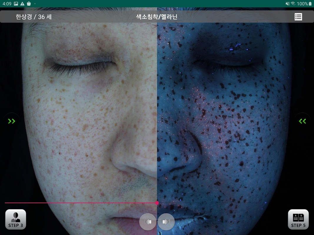STEP 3. 마크뷰 이미지를 2분할로 관찰이 가능하며, 피부상담 및 전 후 비교에 용이합니다.