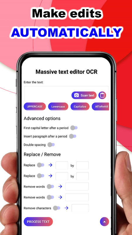 When working with text, you need to edit it to improve its style and readability. Text editing can be done manually or automatically with the tools offered by the application. Write or scan the text you want to edit, then you can send it by email or share it on social networks, you can also copy that text to the clipboard and use it in any other application.
