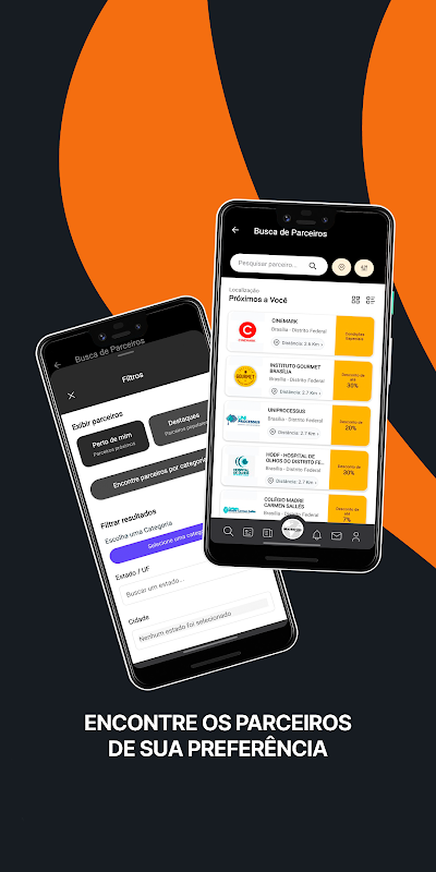 لدينا أكثر من 10,000 مؤسسة شريكة في جميع أنحاء البرازيل، تشمل دور السينما ومحطات الوقود، ومتاجر التسوق الإلكتروني والعيادات، ومراكز البصريات والجامعات! تغطي شبكة شركائنا جميع قطاعات النشاط.