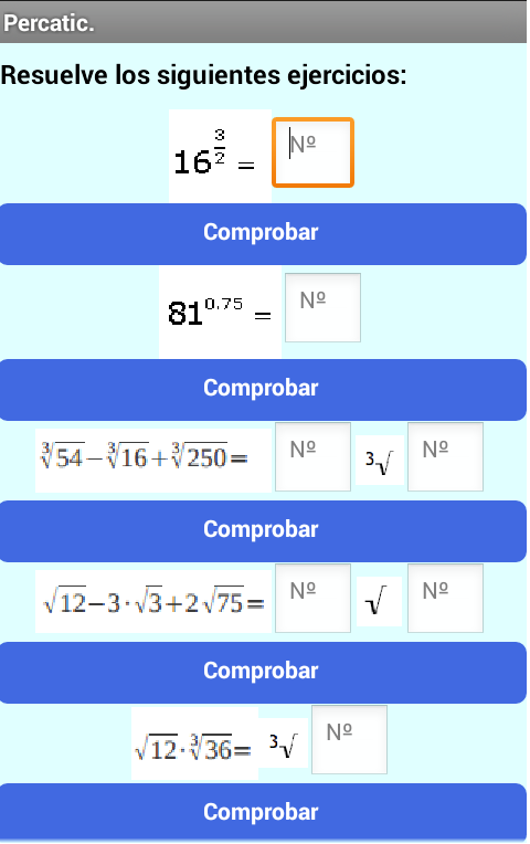 En esta app podrás practicar haciendo ejercicios de radicales, sucesiones, progresiones e interés, polinomios, sistemas de ecuaciones, resolución de sistemas gráficamente, ecuaciones de segundo grado y resolución de ecuaciones por el método de ruffini.