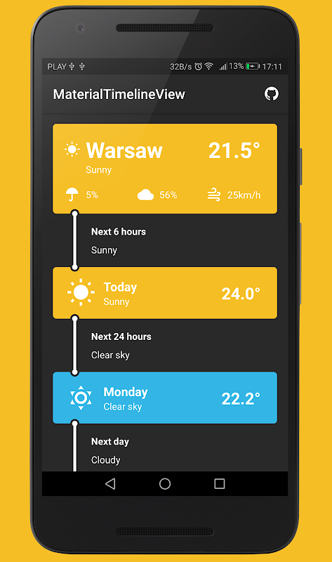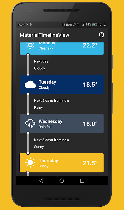 مظاهرة من المكتبة MaterialTimelineView. مشروع مفتوح المصدر استضافتها على جيثب: https://github.com/hypeapps/MaterialTimelineView