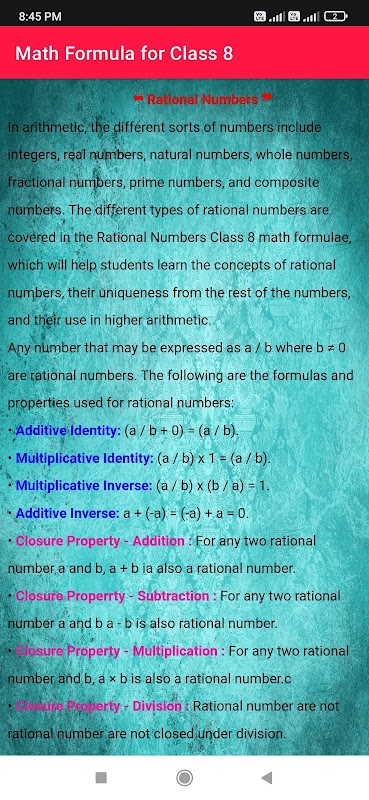 صيغة الرياضيات للفئة 8 | كل صيغة الرياضيات