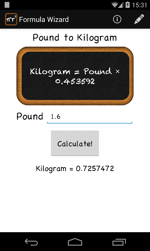 الرياضيات الفورمولا معالج - الصيغ الرياضيات والعمليات الحسابية على الهاتف الروبوت الخاص بك أو الكمبيوتر اللوحي. انها حرة وجميلة وسهلة الاستعمال!