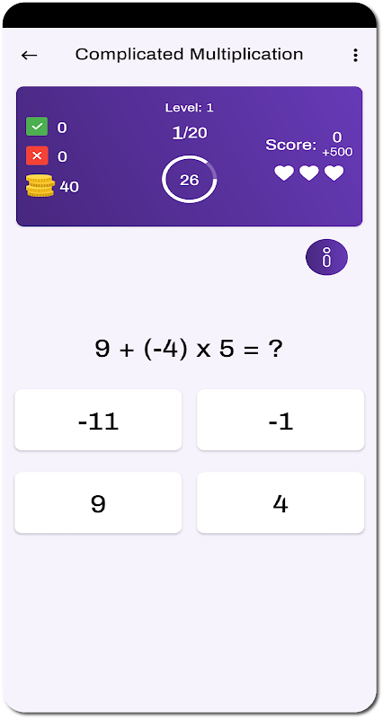 Develop your intellectual facilities by solving various mathematical tasks as quickly as possible: addition, subtraction, multiplication and division! Limited amount of time for answering only stimulates your brain to work faster, better and more efficiently.