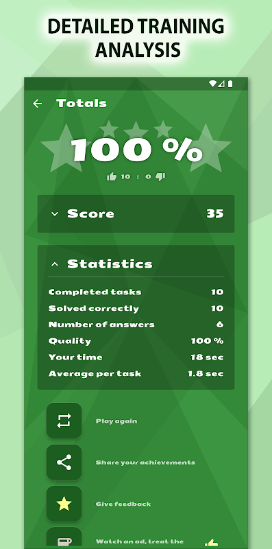 ★ لكل مهمة تم حلها بشكل صحيح، يتم منح النقاط. إذا أجبت بسرعة، فستحصل أيضًا على نقاط إضافية مقابل السرعة