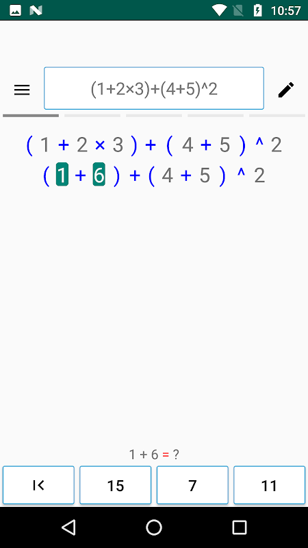 - سيوضح لك هذا التطبيق كيفية تقييم تعبير رياضي بالترتيب الصحيح.